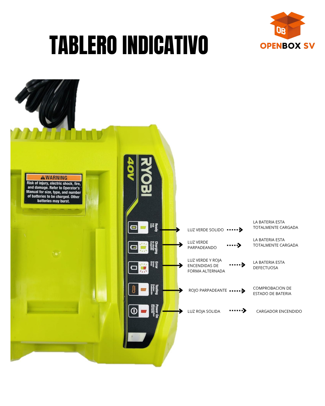 ✅Carga baterías de 40 V en 1 hora o menos en promedio ✅Las luces indicadoras muestran el estado de carga... Leer más...