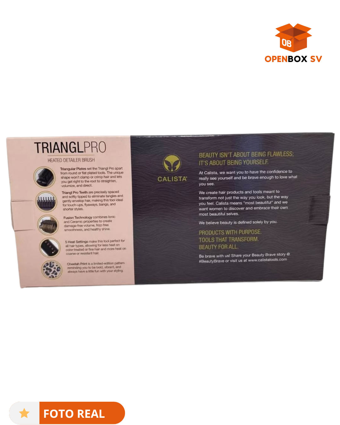 El cepillo alisador Calista TrianglPro le permite agregar elevación y volumen extremos, suavizar, enderezar, voltear, dirigir y controlar cabellos rebeldes.