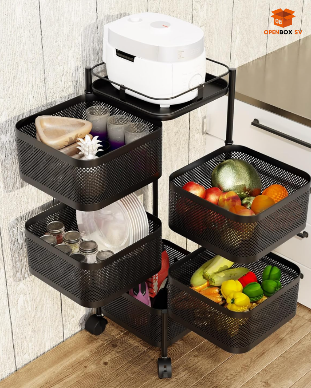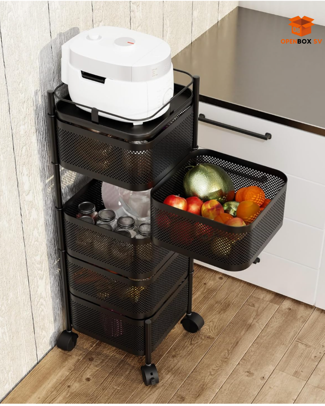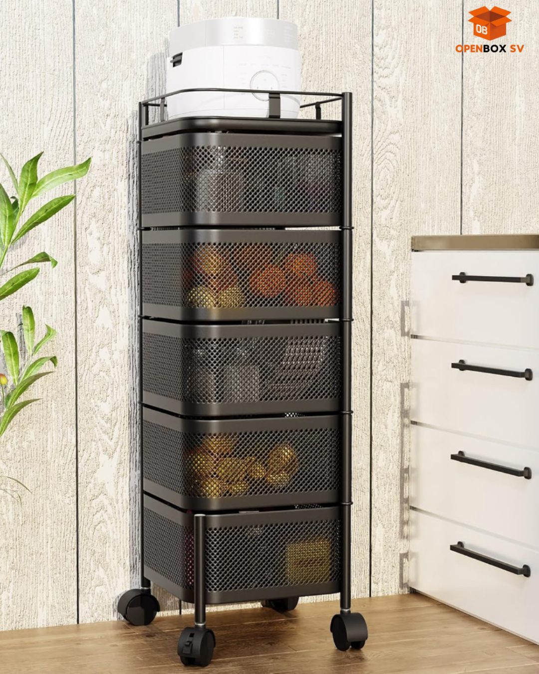 Estante giratorio de almacenamiento de cocina, carrito de despensa con ruedas de 5 capas, carrito de almacenamiento de frutas y verduras
