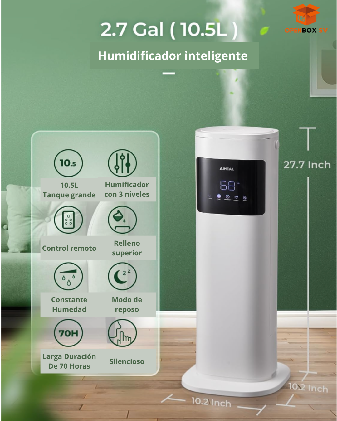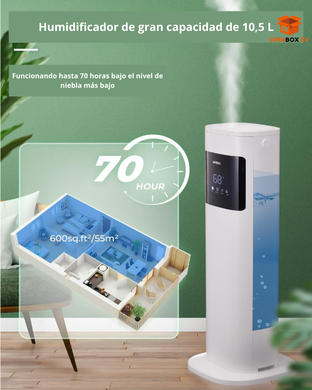 Gran capacidad de 10.5 litros: el humidificador ultrasónico para el hogar cuenta con un tanque de agua de gran capacidad... Leer más...