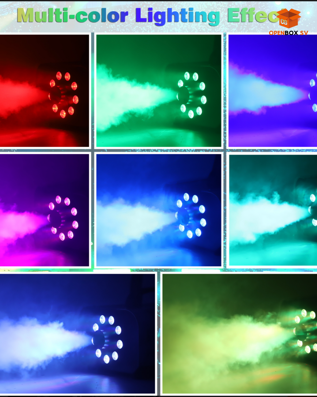 Diseño de 9 luces RGB: máquina de niebla para exteriores con 9 LED RGB, viene con un efecto de luz... Leer más...