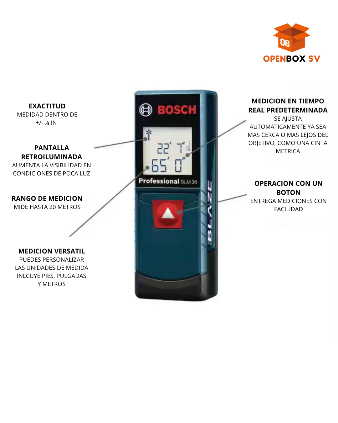 ✅ Tecnología de medición láser precisa con una precisión de 1/8 de in.