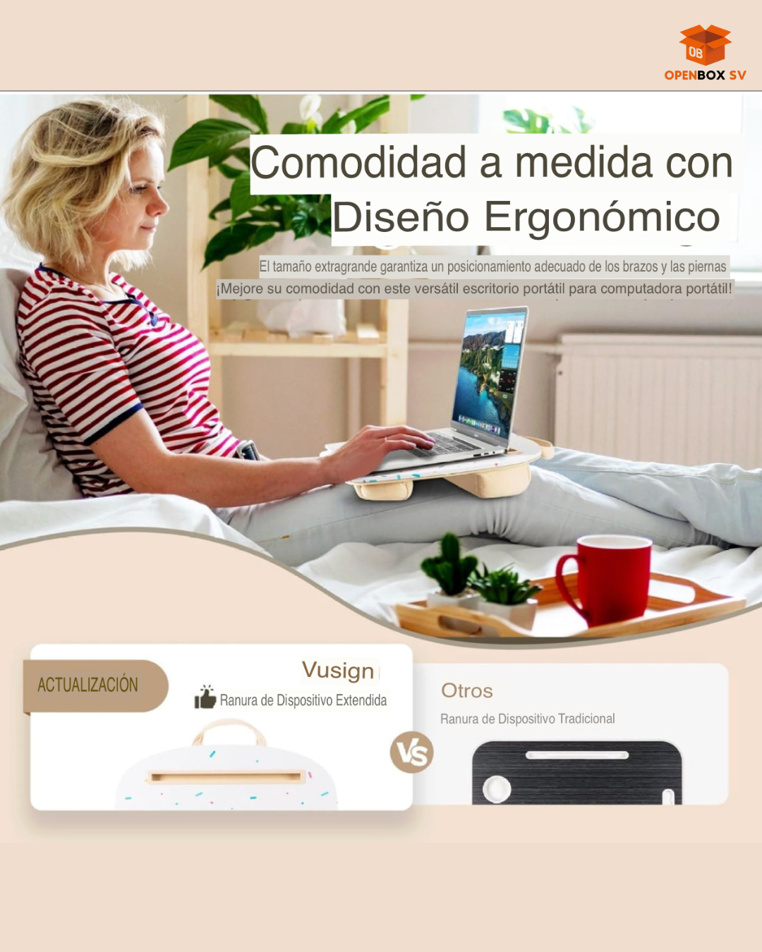 Úsala como mesa de trabajo, soporte para lectura o escritorio portátil. Ideal para trabajar, ver películas o relajarte con total comodidad. 🛏️📚