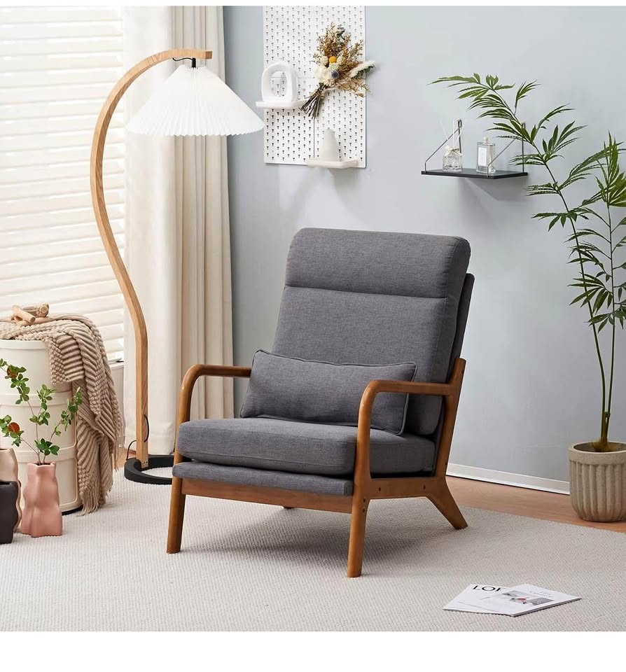 ✅Asiento ideal para invitados: Su grueso cojín acolchado, su suave tapizado y estructura de madera maciza lo convierten en un asiento adicional ideal para invitados de una amplia gama de edades, desde adolescentes hasta ancianos. El diseño reclinable ligeramente posterior de sus brazos de madera es egonómico humano para descansar también.